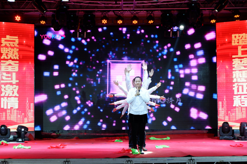 在聯(lián)歡會(huì)的現(xiàn)場(chǎng),華麗舞臺(tái)燈光璀璨,背景制作喜氣祥和,一派喜迎新春的美好盛況,那一首首悅耳動(dòng)聽(tīng)的歌曲,那一段段優(yōu)美豪放的舞蹈,那一個(gè)個(gè)風(fēng)趣搞笑的互動(dòng)小品.......在舞臺(tái)上傾情巨獻(xiàn),精彩紛呈,掌聲與喝彩此起彼伏,現(xiàn)場(chǎng)氣氛熱烈、喜氣、祥和,凱為人的魅力與風(fēng)采在這一刻光芒四射,凱為人的才藝在這一刻八仙過(guò)海??!